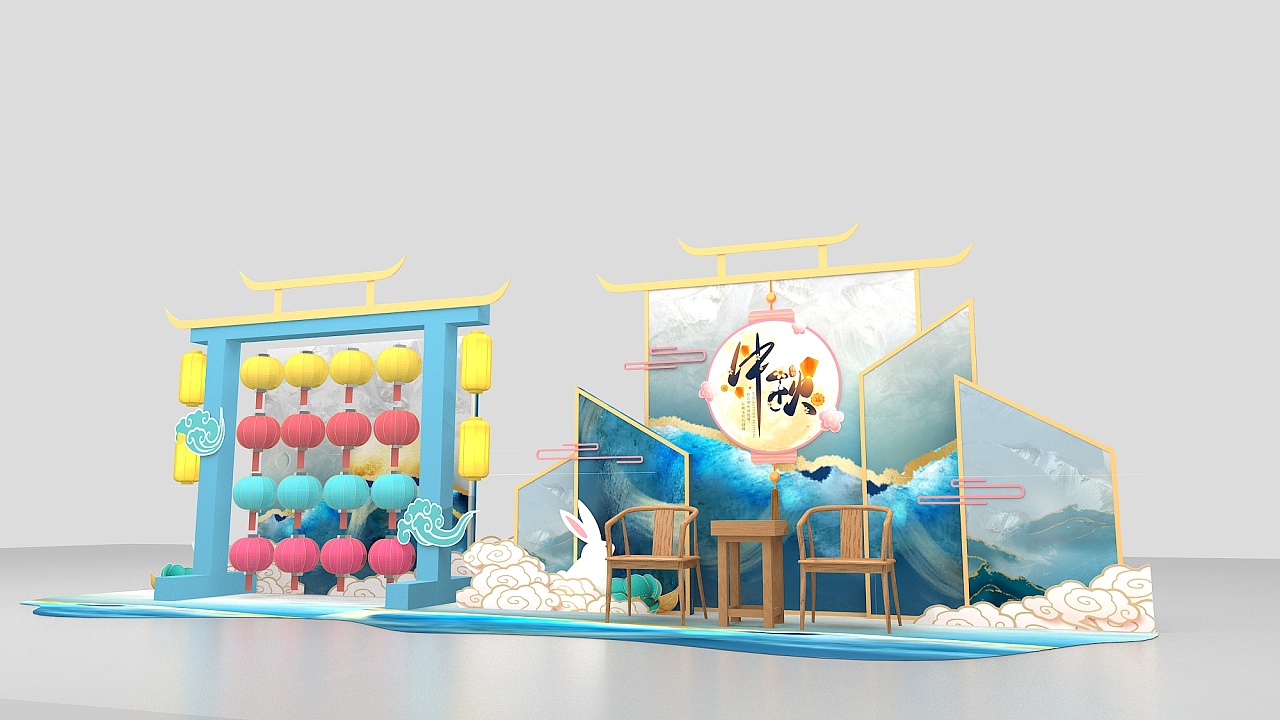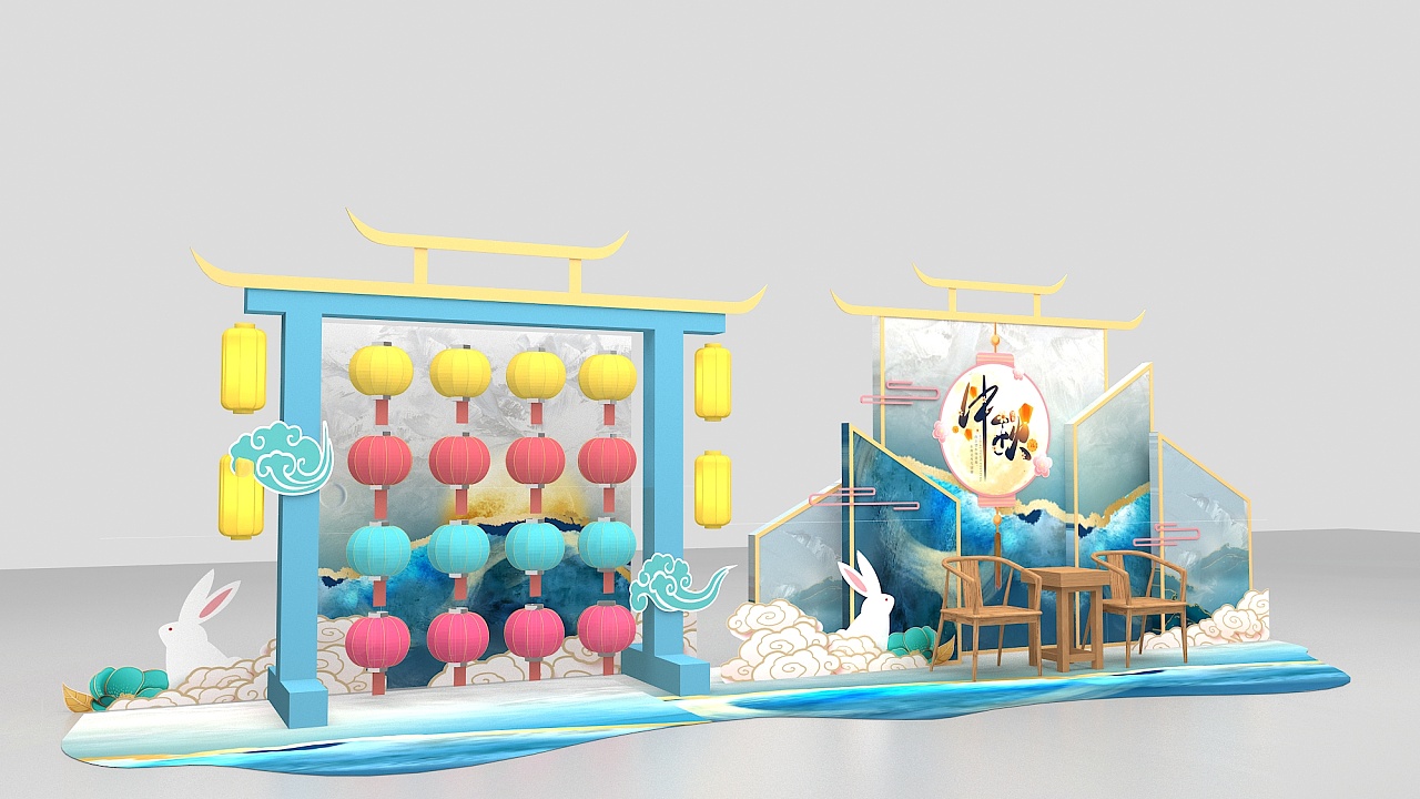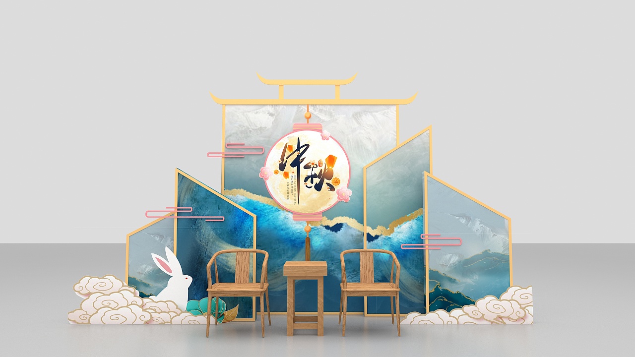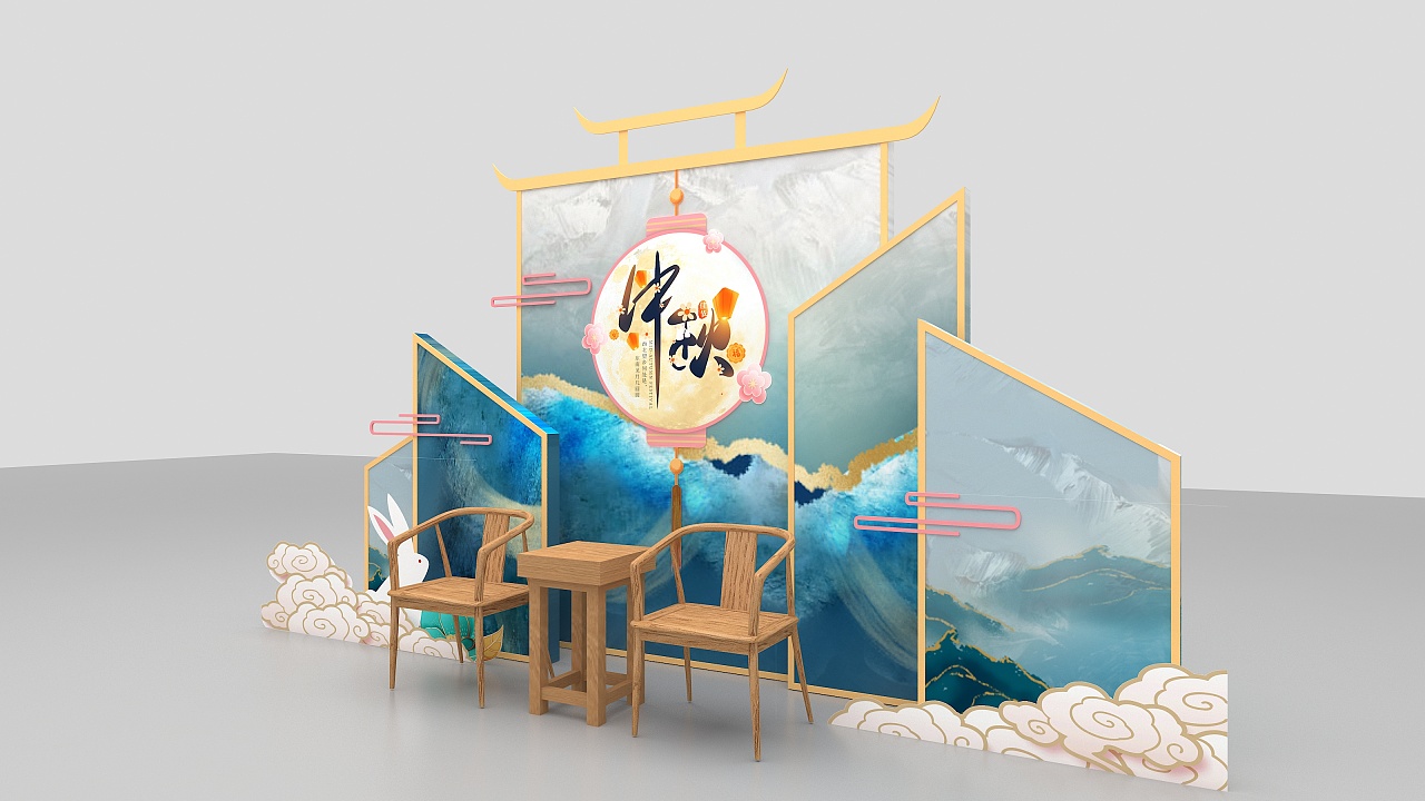 地产商业美陈设计中秋新中式清新风