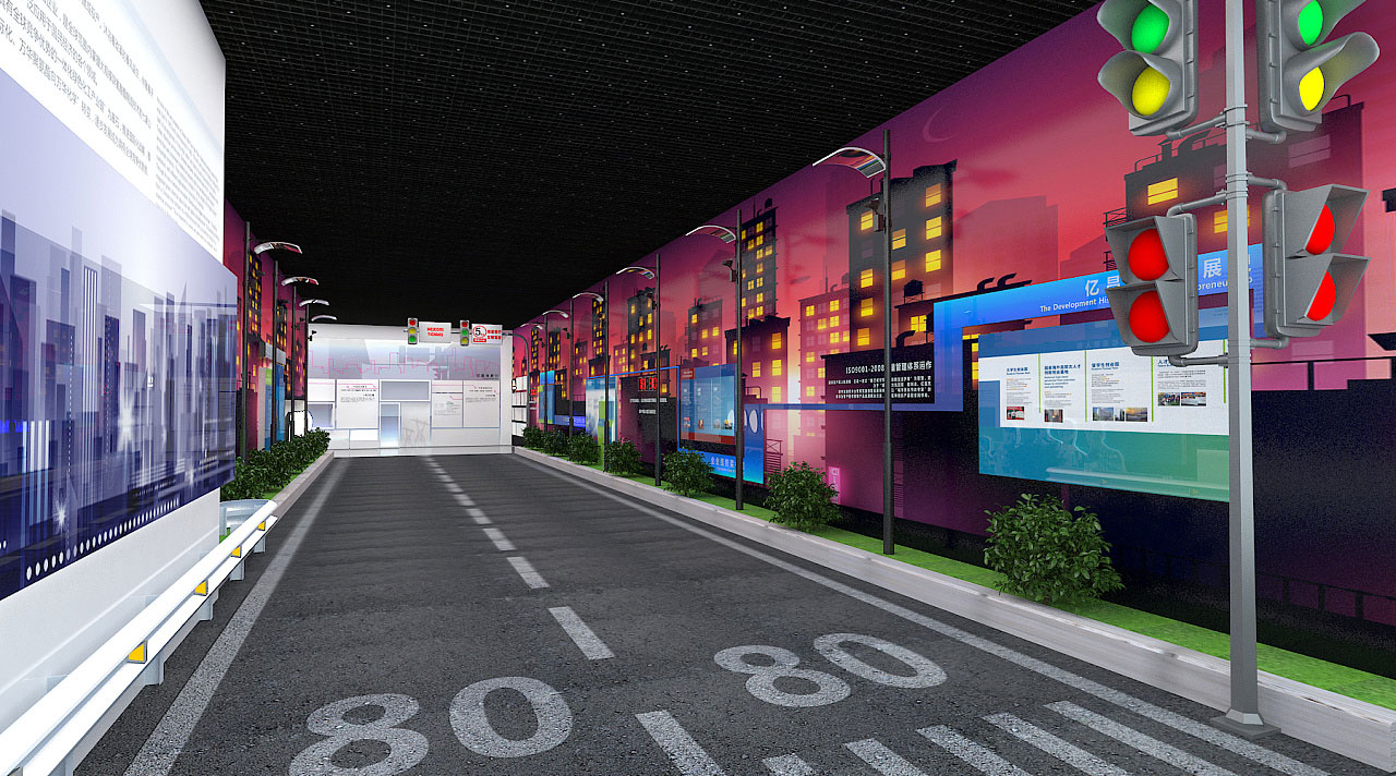 运用色彩和灯光使得展厅层次分明,应用新工艺材质,促进展厅空间整体化,使模拟空间更为实际化